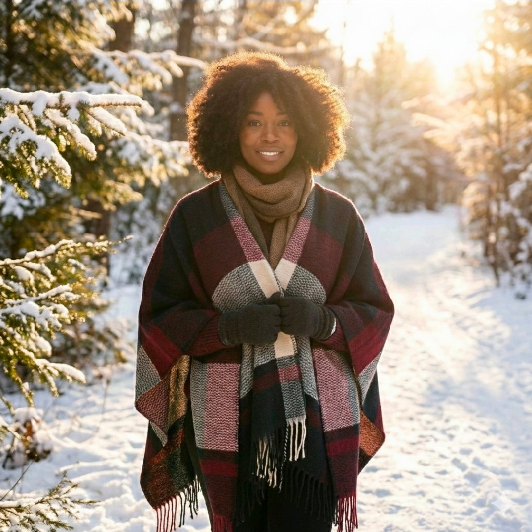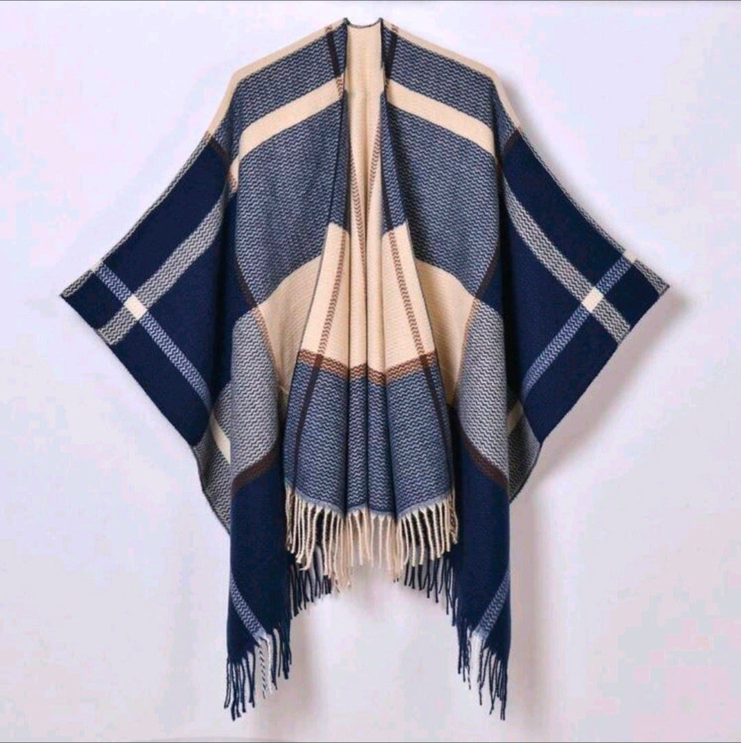 Wrap yourself in effortless drama with this luxury plaid fringe poncho, where cozy meets bold sophistication. Designed to drape beautifully on every body, this statement piece features a timeless plaid that instantly elevates any outfit.